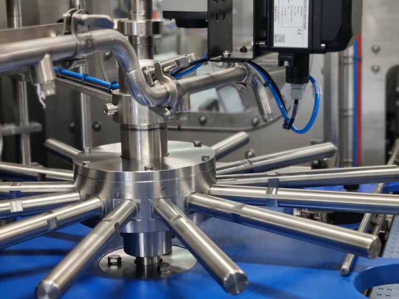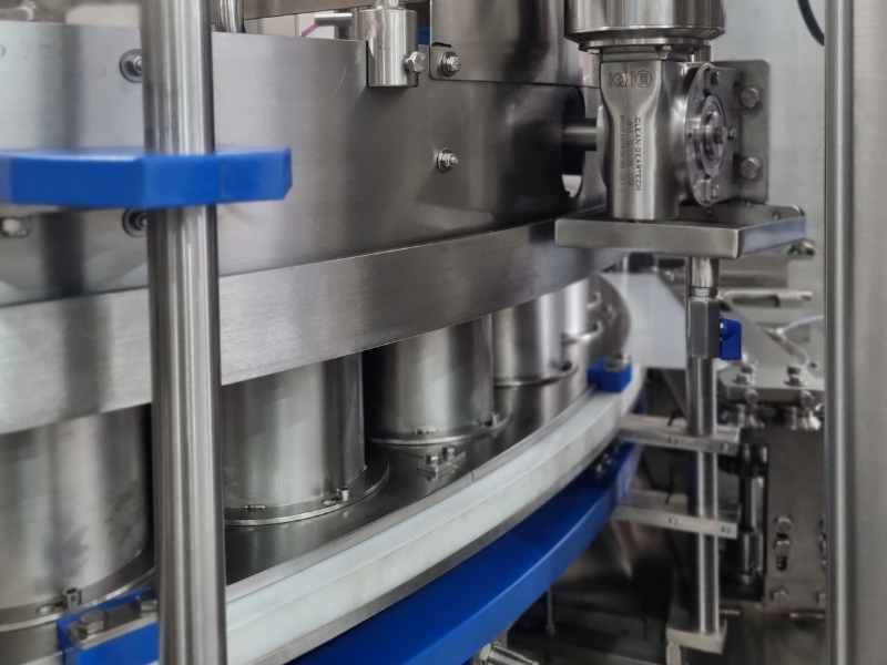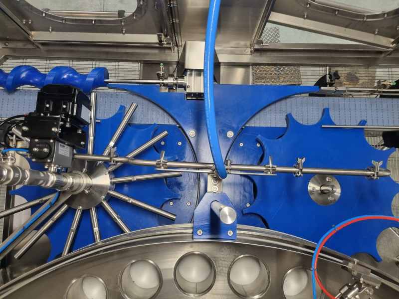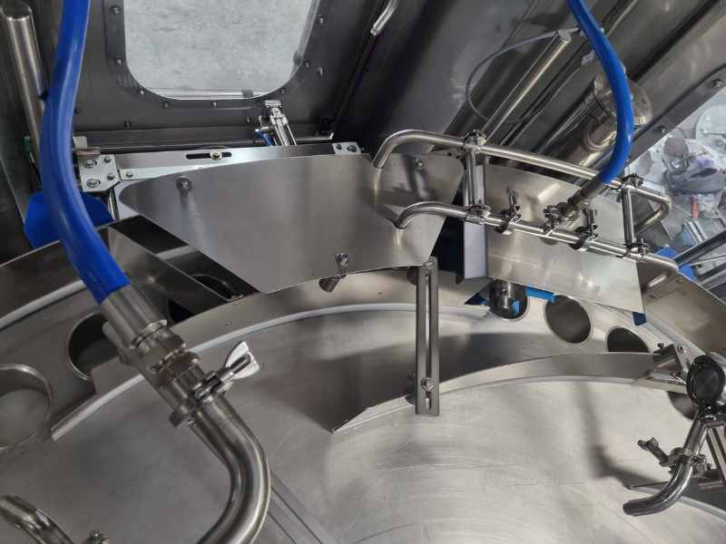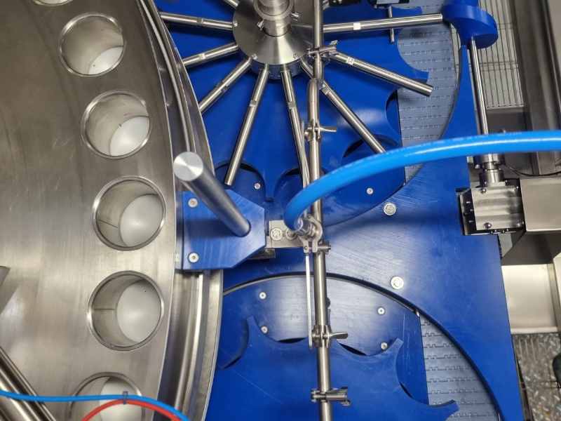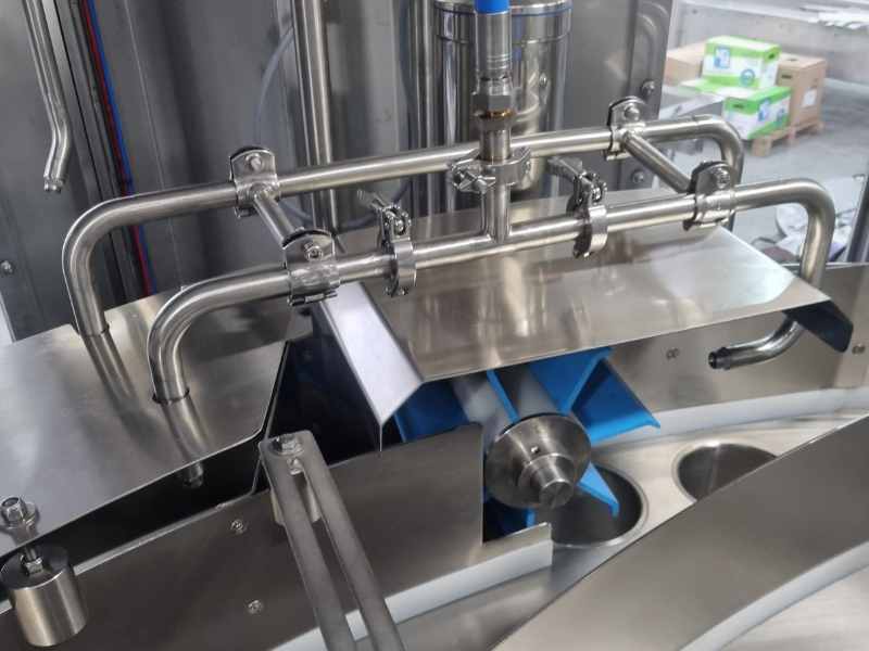La vasca superiore contiene il prodotto, la cui quantità è regolata da un’opportuna bilancia che consente la dovuta alimentazione all’interno della stessa. Attraverso dei deviatori il prodotto viene condotto nella zona di riempimento, in cui i telescopi permettono il dosaggio volumetrico desiderato tramite la regolazione dell’altezza dei dischi.